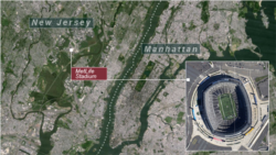 Stadion MetLifeStadion New Jersey penuh dengan media dari berbagai belahan dunia sebelum pertandingan utama ditayangkan ke lebih dari 200 negara. Lebih dari 500 penyiar internasional terdaftar untuk meliput acara tersebut. Beberapa orang mengatakan pada VOA bahwa Super Bowl menarik minat penonton di negara mereka.