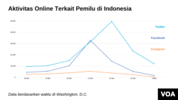 Menurut analisa data VOA, aktivitas di Facebook terkait pemilu di Indonesia turun 94,9%, dan Instagram turun 91,9% dalam periode 21-24 Mei.