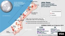 Lebih dari 1.900 warga Palestina, umumnya warga sipil, telah tewas dalam pertempuran yang pecah awal Juli lalu. Enam puluh empat tentara Israel dan tiga warga sipil Israel juga tewas.
